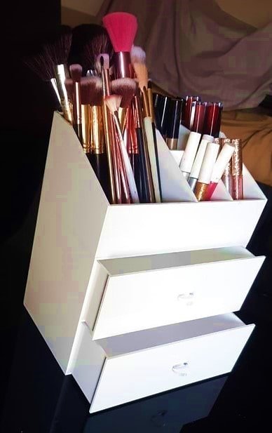 Cosmetiquera en acrílico blanco sólido de 3 mm